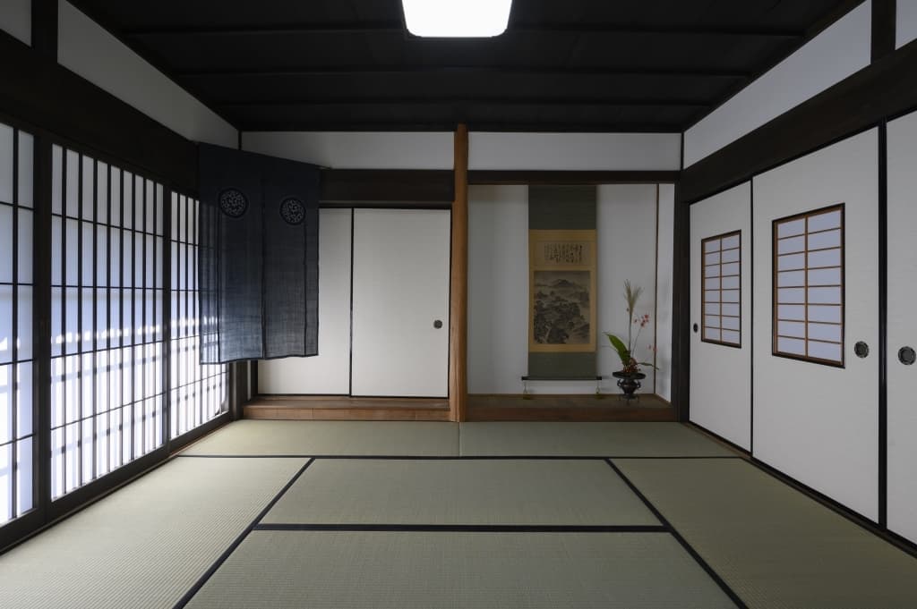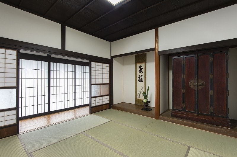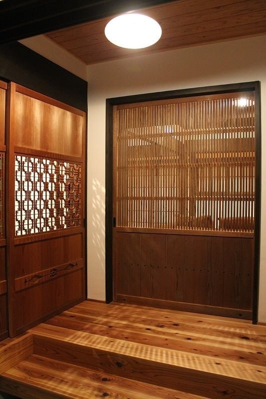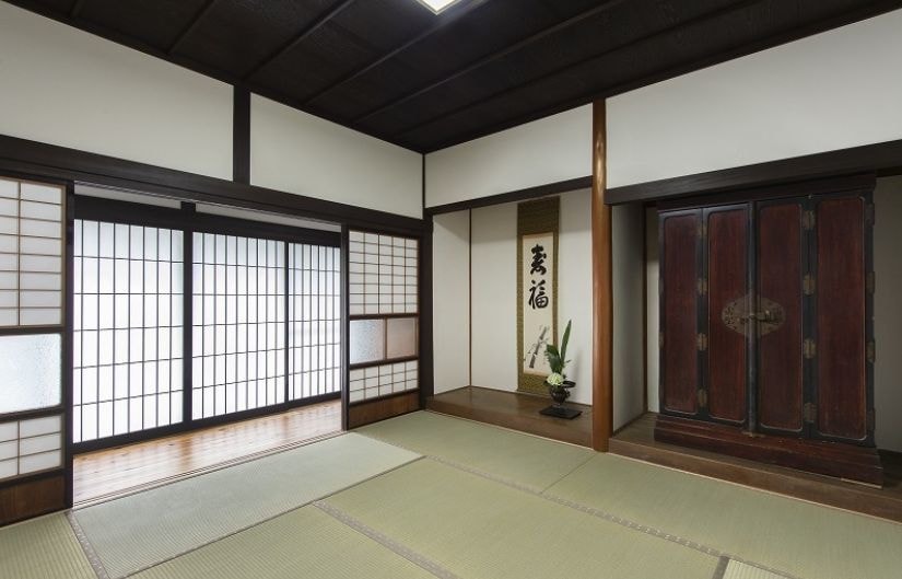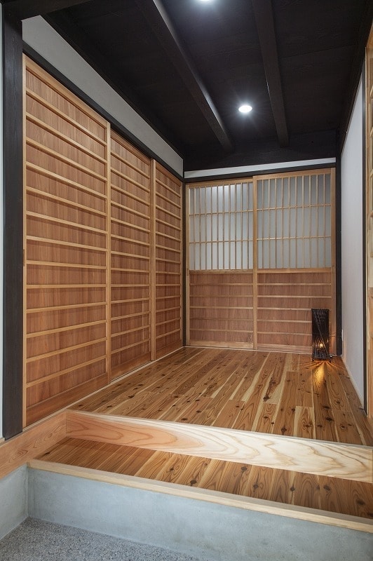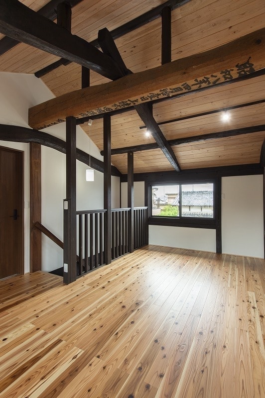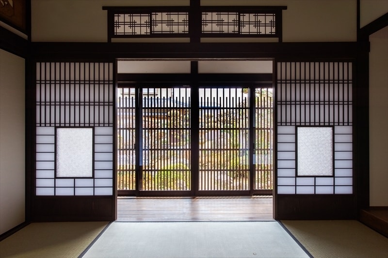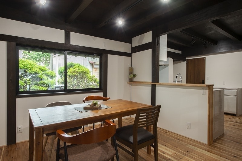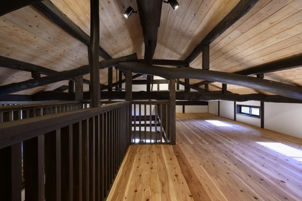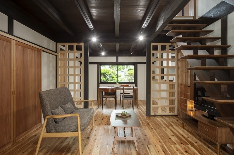 伝統的な内装を活かしつつ、格子パネルや壁の内側ダンパーで耐震性を高めています。