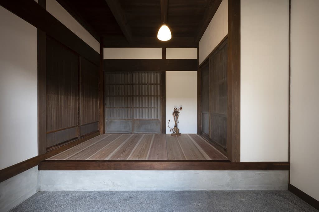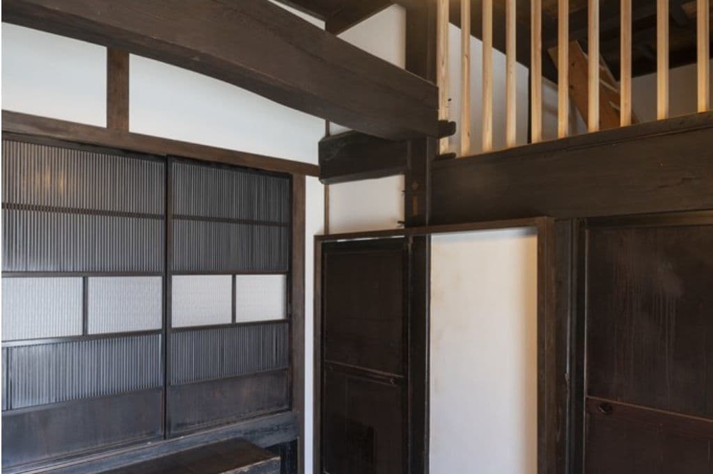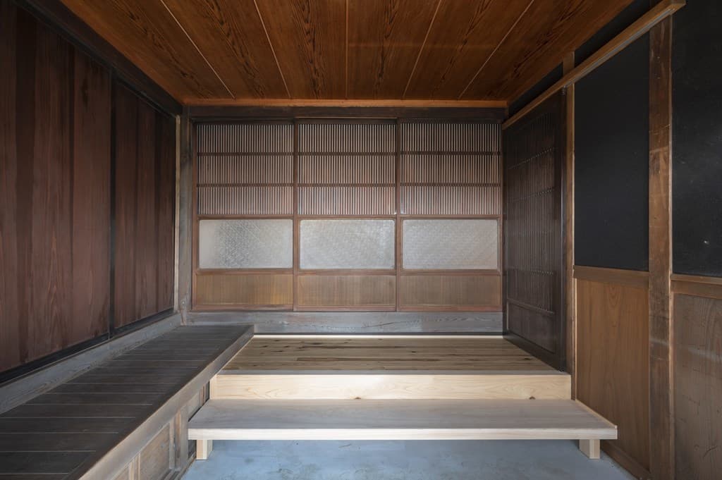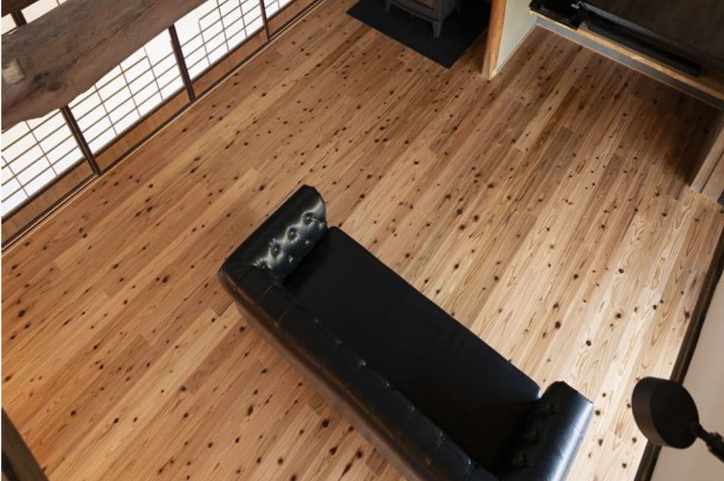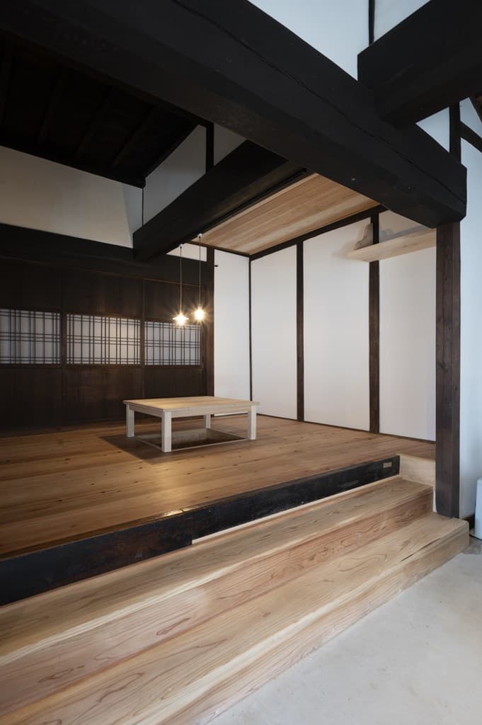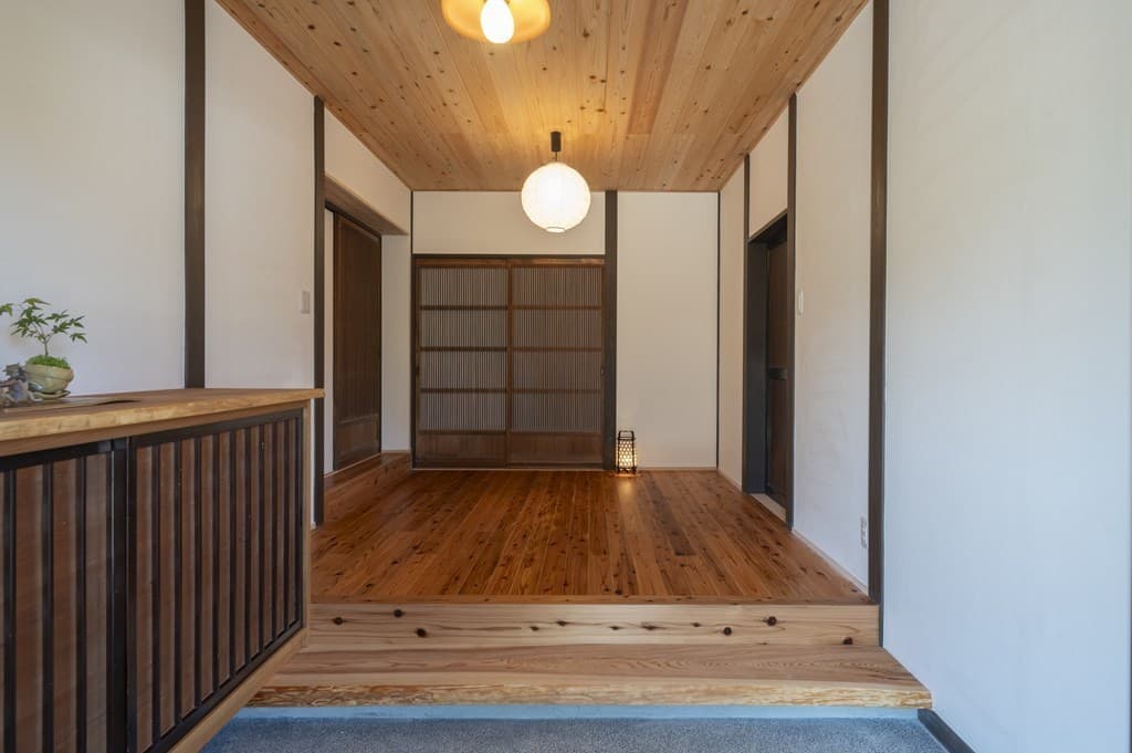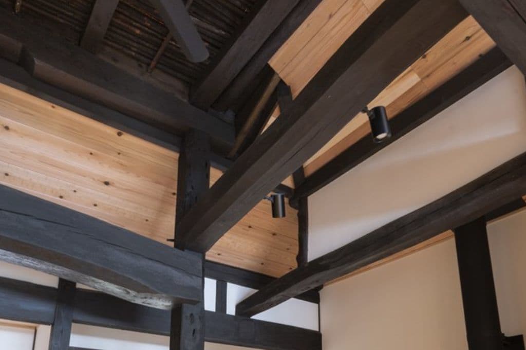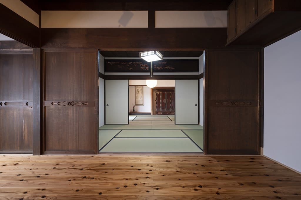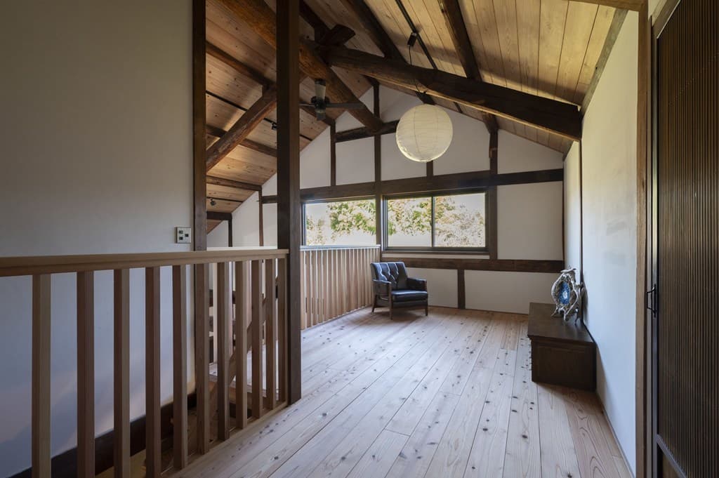 内装は昔ながらの土壁を塗り直し、地元の杉材を使った床や羽目板を採用。建具は当時のものをリペアし、役割や配置を工夫しながら再利用することで、古民家の魅力を引き立てました。