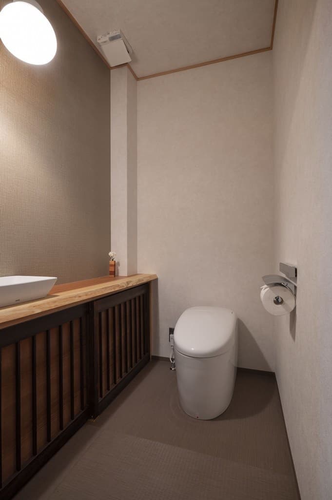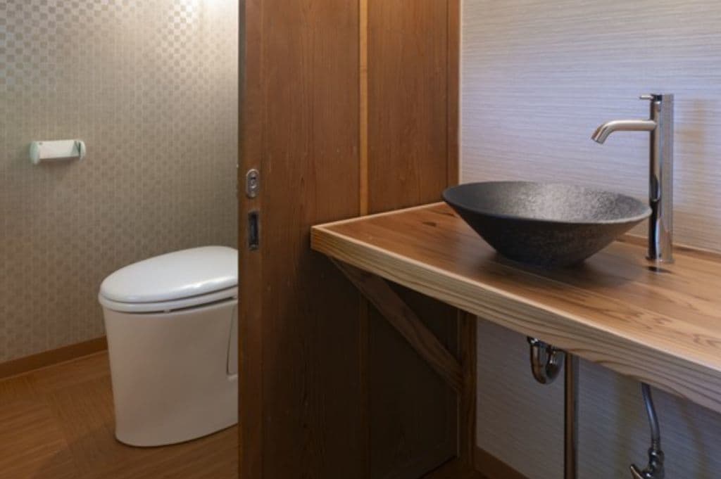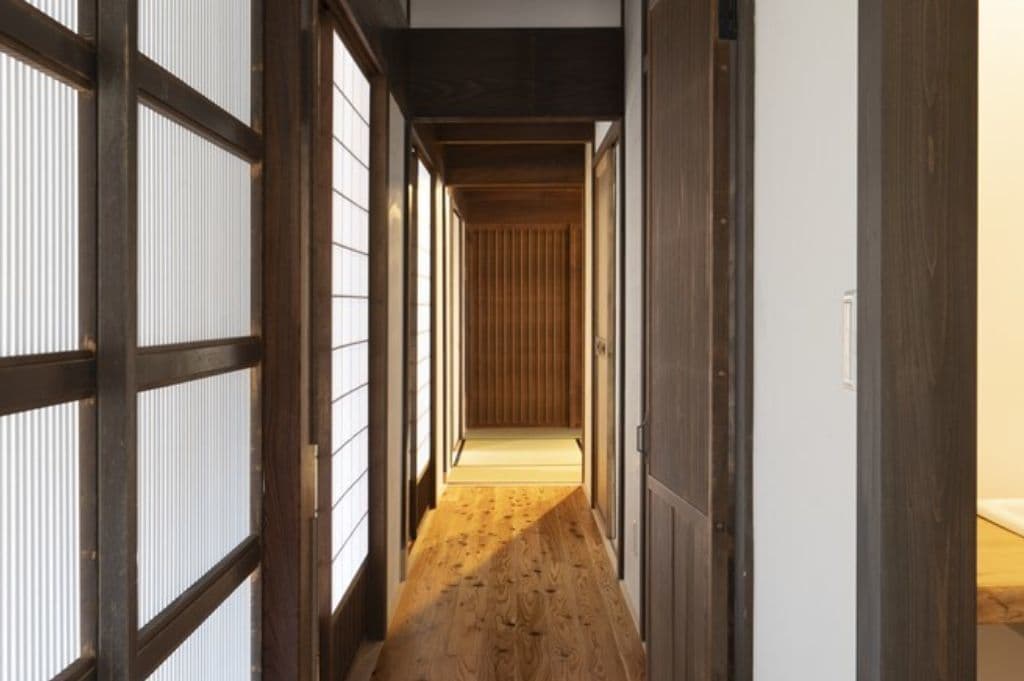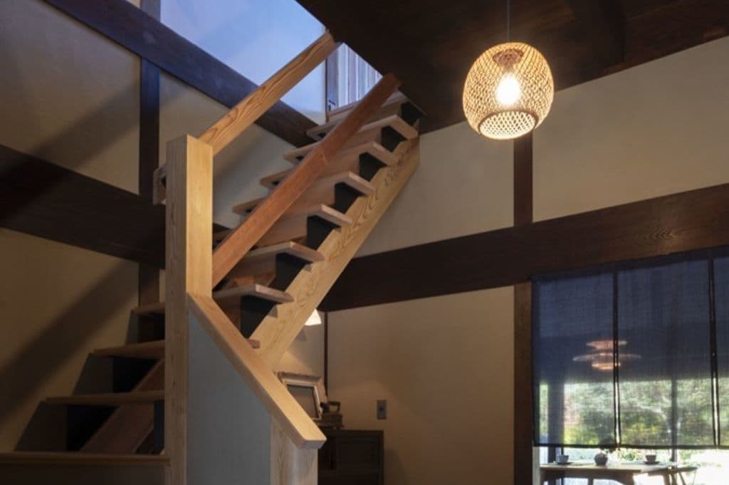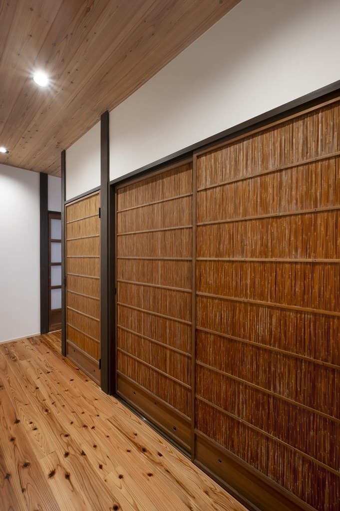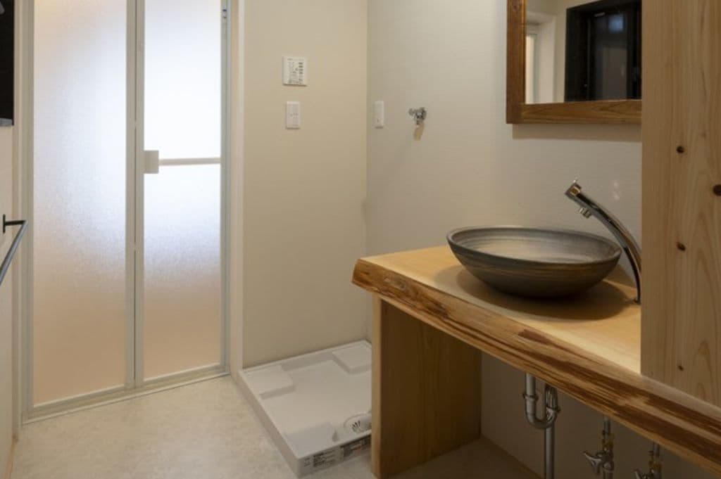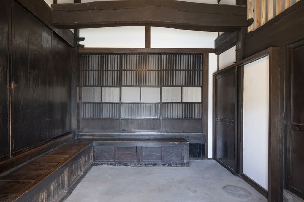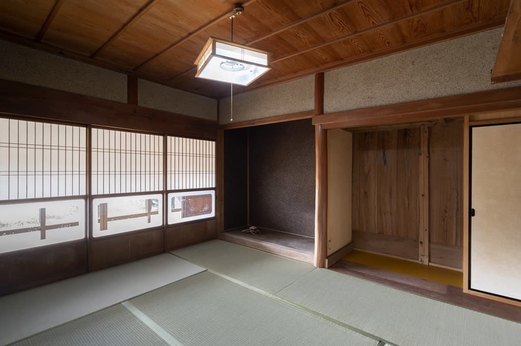 内装は昔ながらの土壁を塗り直し、地元の杉材を使った床や羽目板を採用。建具は当時のものをリペアし、役割や配置を工夫しながら再利用することで、古民家の魅力を引き立てました。