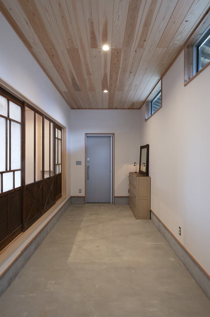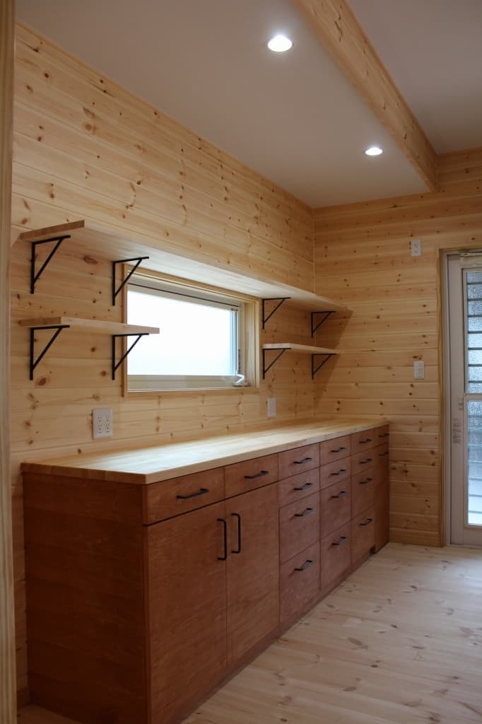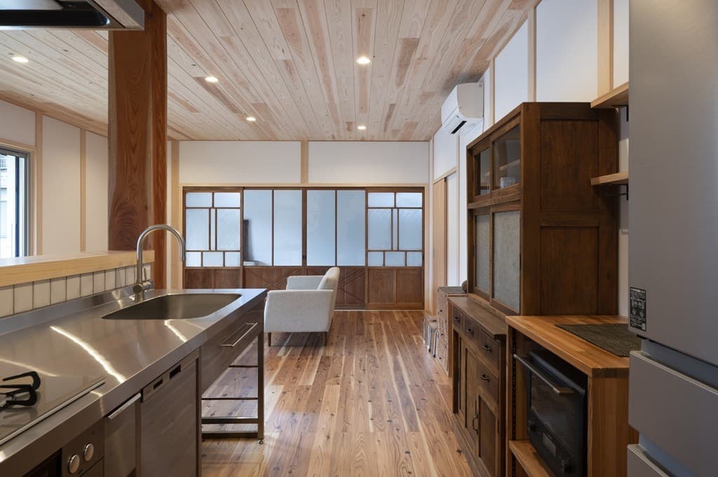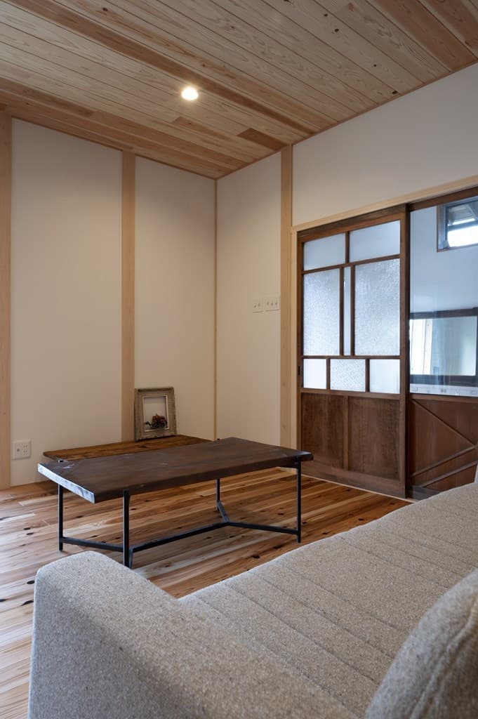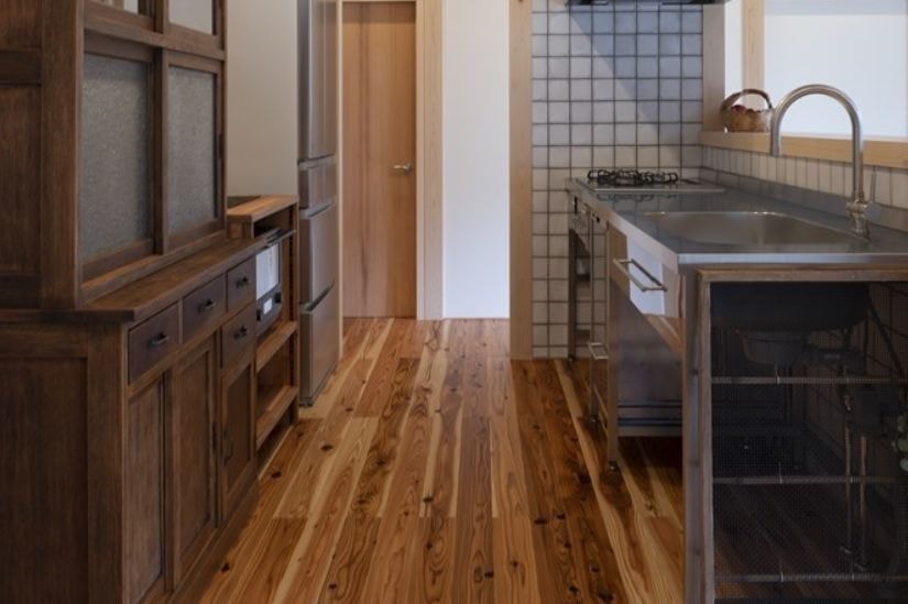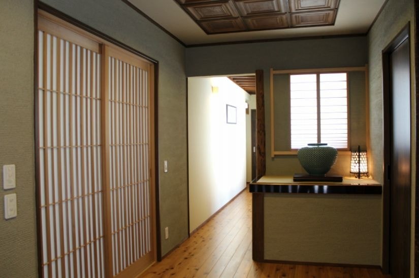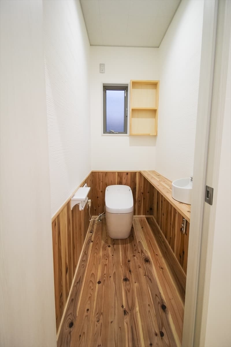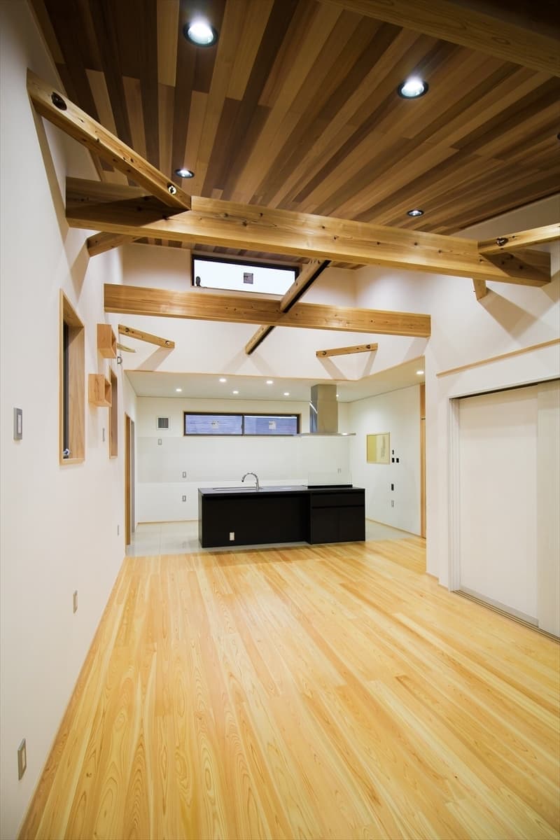 NEW HOUSE 新築住宅施工例 『住宅施工物件 NO.1』 古民家がお好きな施主様の意向で、大黒柱や建具などは古民家から移設利用しております。和風建築の多い田舎の集落の雰囲気に合わせた外観をご希望とのことでしたので、珍しい黒いぶしの和瓦で施工しています。 趣味のスペースとして通り土間を広くお取り致しました。たっぷりとした収納を備えたことで空間を広々とお使い頂ける物件です。三重県の木を主に使った住まいは、三重の森の循環にも繋がっております。 『住宅施工物件 NO.2』 古民家風の新築住宅をお造りしました。室内は木をふんだんに使い温もり溢れる住宅となっております。全面の格子戸から漏れる照明、家に帰ってきた時ほっとする柔らかな明かりが特徴的です。 『住宅施工物件 NO.3』 大きな窓、玄関から吹き抜ける風が家全体を通る、とても気持ちの良いお住まいが完成しました。壁、天井、床全てに木を使った温かな住まい。大きくとった玄関トーチで雨の日の出入りも濡れることがありません。 『住宅施工物件 NO.4』 贅沢に木を使ったお住まいが完成しました。柱として整えた梁ではなく、木そのものの湾曲を生かした形状、随所に感じられる自然な木の木目、節。各種建具は桧の一枚板でお作りしています。 『住宅施工物件 NO.5』 山路工務店取締役顧問自宅。主婦の目線で動線を配置しました。キッチン横のステンドグラスが優しい色合いを演出します。足元が冷えやすいキッチンにペレットストーブを配置。家族が集まるリビングは床暖房を完備し、冬でも暖かいお住まいとなっております。