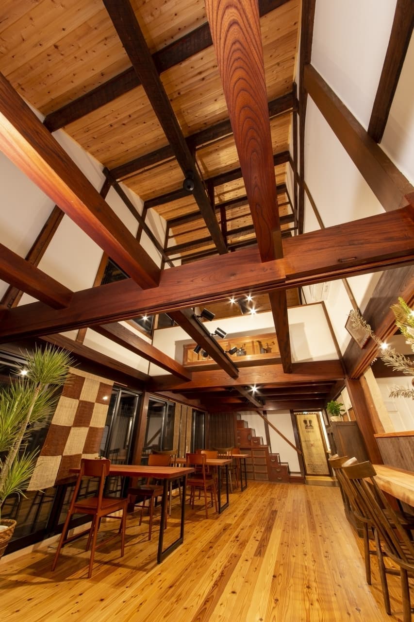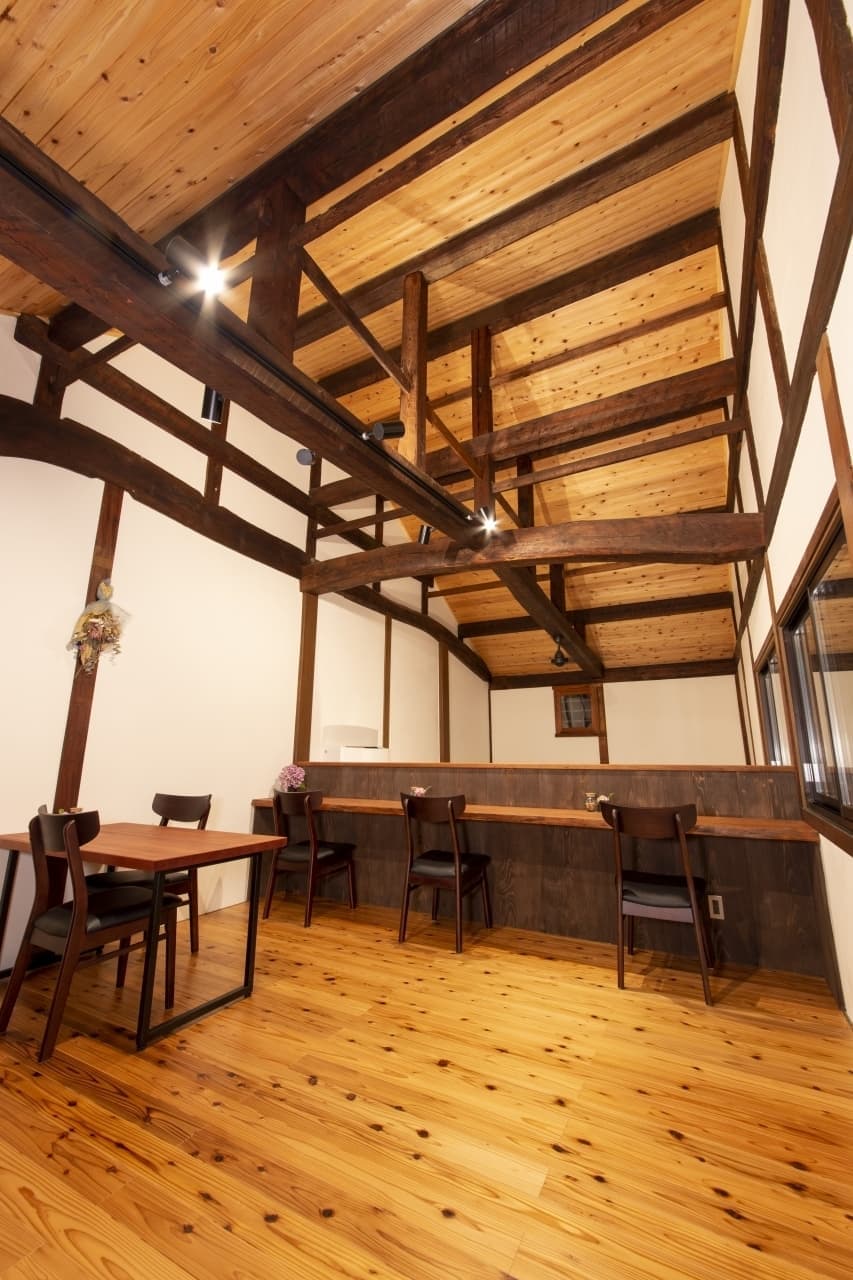 多気町丹生。明治18年建築の呉服屋さんが珈琲店に生まれ変わりました。素晴らしい梁、和風庭園を活かした寛ぎの珈琲店です。
