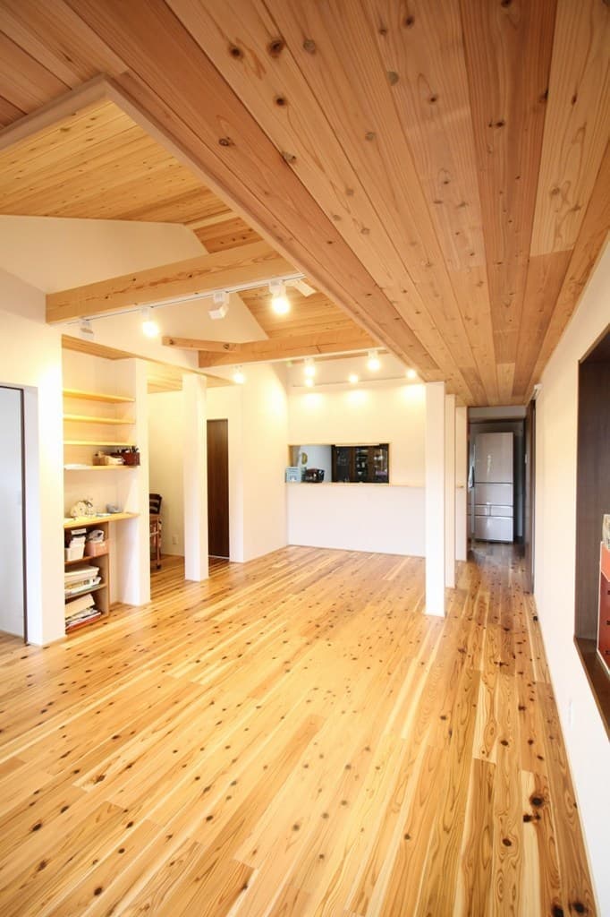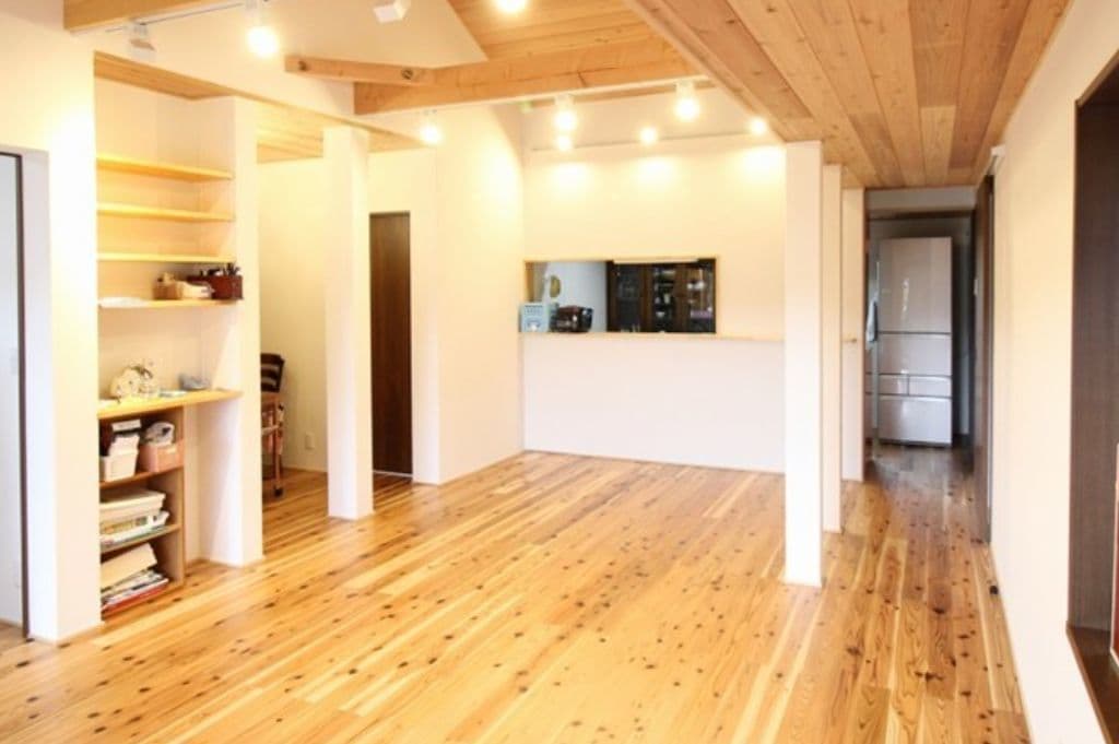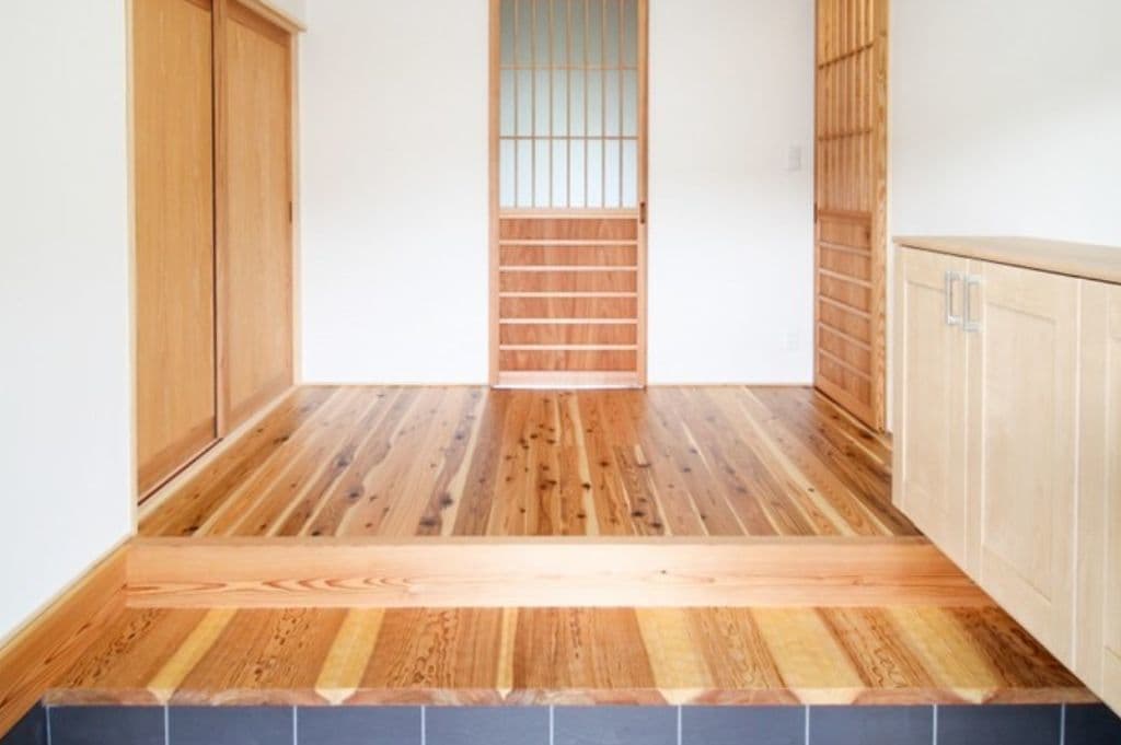 REFORM リフォーム物件施工例 『施工物件 NO.1』 85年前の古民家リフォーム物件。 玄関の上がり框ははつり板を使用。釿(ちょうな)ではつられた杉板は年が経つほど木に深みを感じさせます。玄関横の鎧戸は防虫、防腐効果のある柿渋で塗装しました。 窓の前の沓脱石(くつぬぎいし)の周囲は洗い出しとなっています。砂利をコンクリートと混ぜ、施工後表面のコンクリートをスポンジで洗い砂利を浮き出させています。 『リフォーム物件 NO.2』 ウッドデッキとお部屋を増築。 ウッドデッキ部分には手洗い場を作り、家族でBBQなど幅広く楽しめる空間となりました。